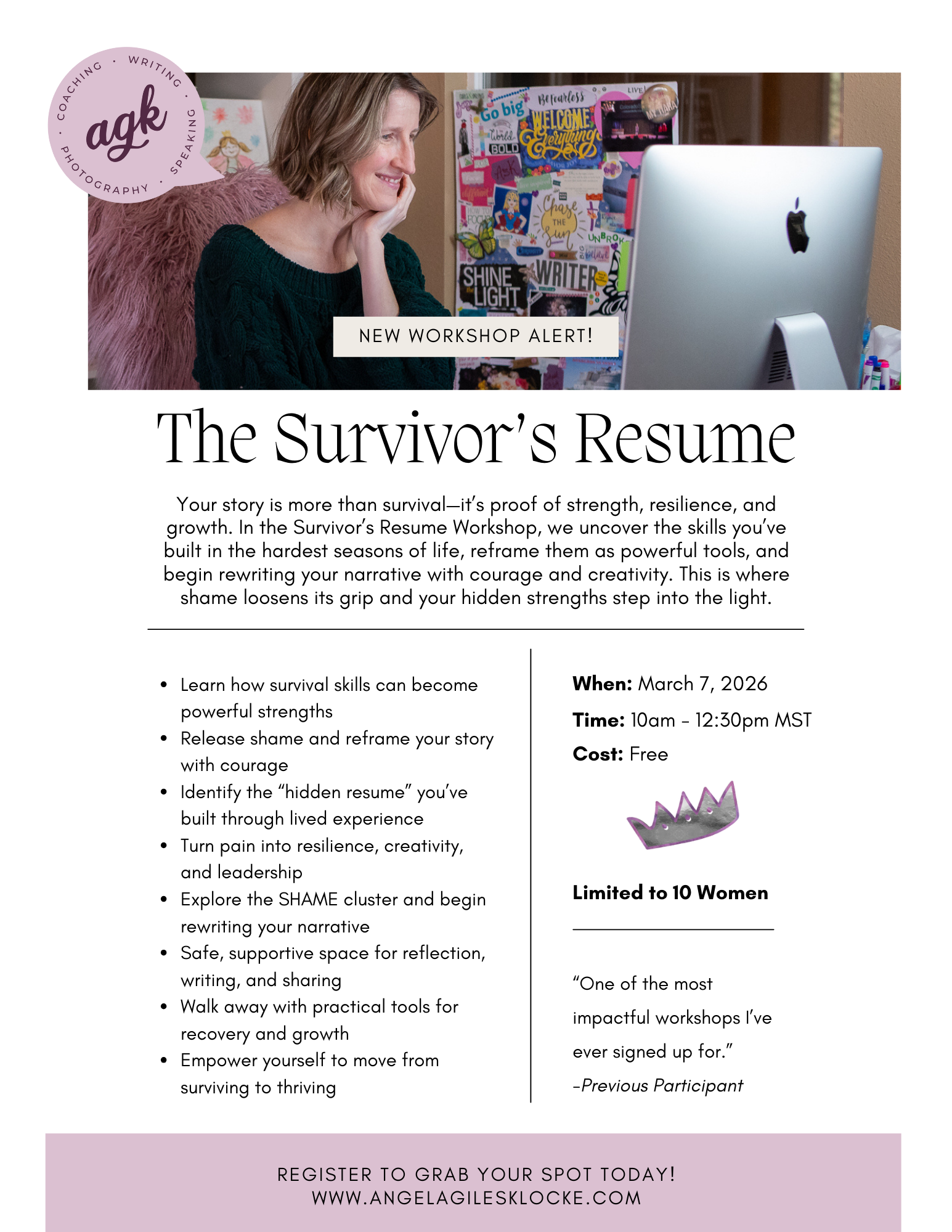Free* Workshop Open to 10 Women Only. 10:00-12:30 MST, March 7, 2026